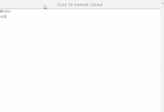 다음은 버튼을 누르면 기본 언어였던 한국어에서 영어로 바뀌는 예제이다. i18n의 locale 옵션을 활용한다면 여러 언어를 지원하는 사용하는 페이지를 더 쉽게 구현할 수 있을 것 같다.