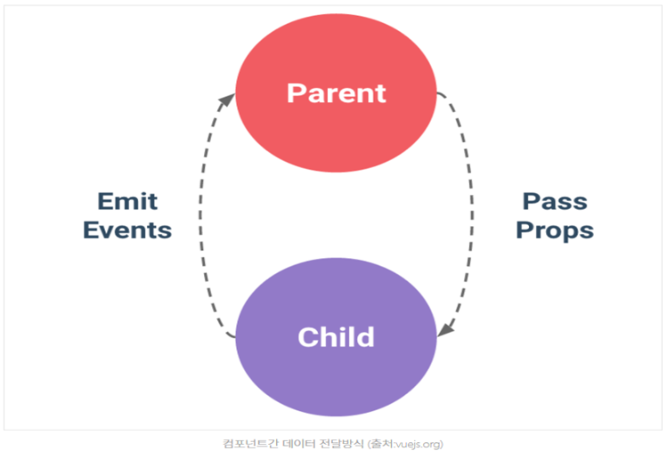 this.$emit("상위에서 받을 이벤트 이름") 을 사용하여 상위 컴포넌트에 이벤트를 보낸다.