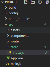 다른 라이브러리 설치 후 종속성 추가할 때처럼 main.js에 바로 추가해도 되지만, src/store 아래에 js 파일을 만들어서 따로 관리할 예정이다. 이는 클래스도 성격별로 세분화되는 것처럼 이후에 전역변수도 여러개가 되는 경우 모듈화를 간편하게 하기 위해서다. 모듈화는 다음 글에서 다룰 예정이다.