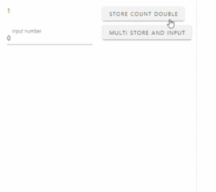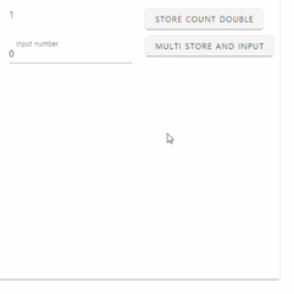 this.$store.commit을 사용하여 이전에 mutations에 정의해둔 함수를 호출할 수 있다. doubleCount()를 보면 store의 doubleCount 핸들러를 실행시키므로 공유 상태 state중 count가 두배로 set 될 것이다. 다음으로 multiInputNumber()를 보면 store의 multiCountAndNumber를 실행시키므로 공유 상태 state중 count와 입력받은 값이 곱해진 결과값으로 count가 set 될 것이다.